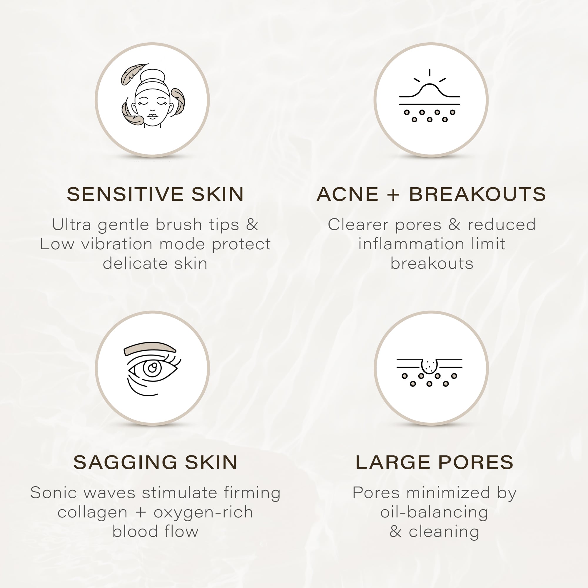 Unlock brighter, firmer skin with 8,000 gentle micro-vibrations per minute that deeply cleanse and stimulate the skin.